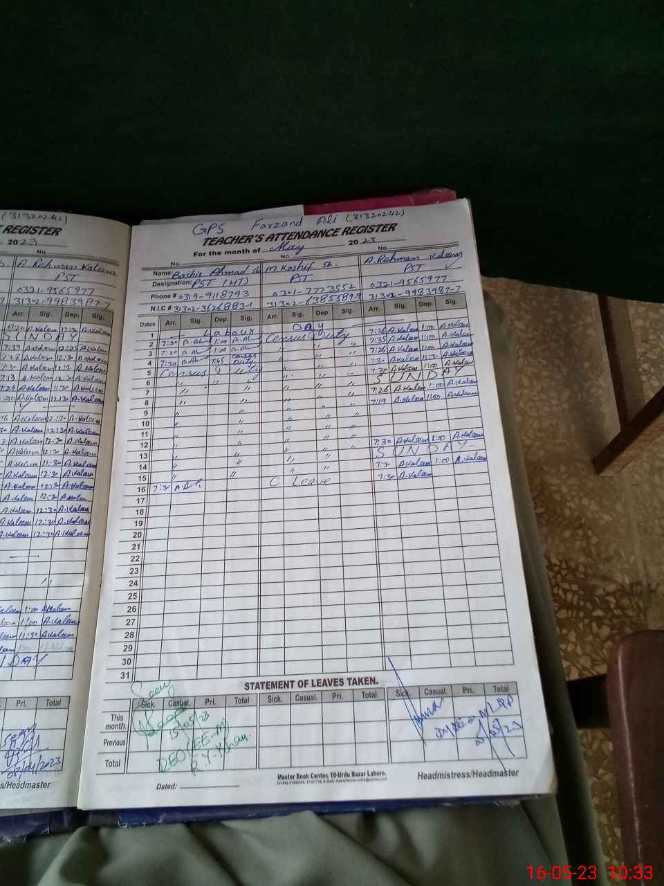 | Name: BA**** AH**** Designation: (School Headmaster's/Headmistress's) PST/PTC/JV Phone/Cell Number: 03**** |