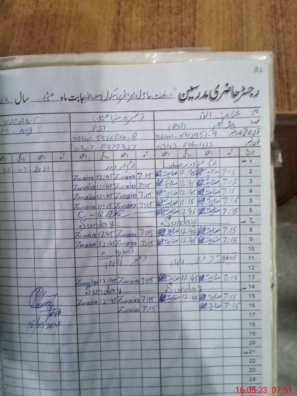 | Name: IN**** UL**** Designation: (School Headmaster's/Headmistress's) PST Phone/Cell Number: 03**** |