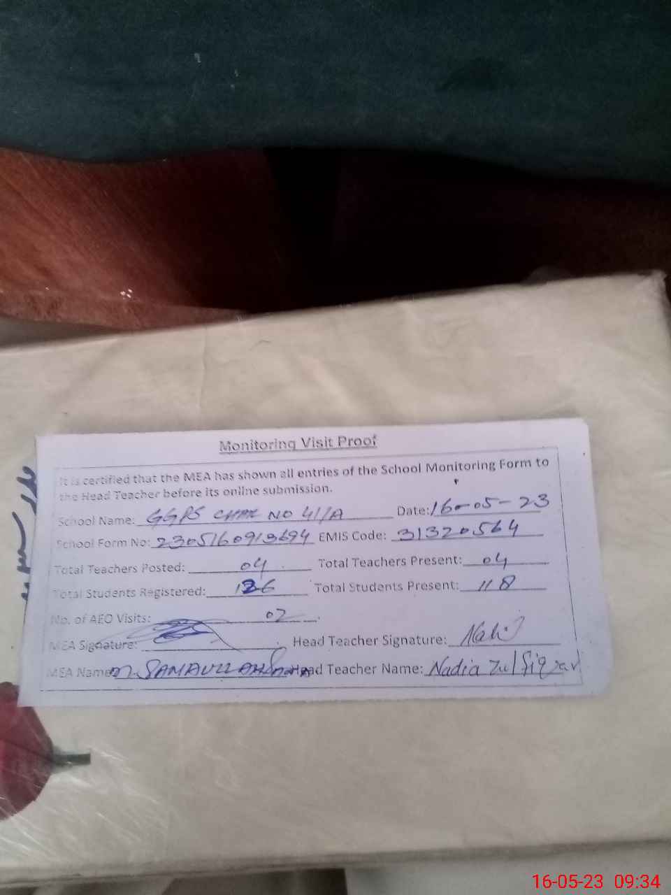 | EMIS Code: 31320564 | Name of School: GGPS CHAK 41/A | |||