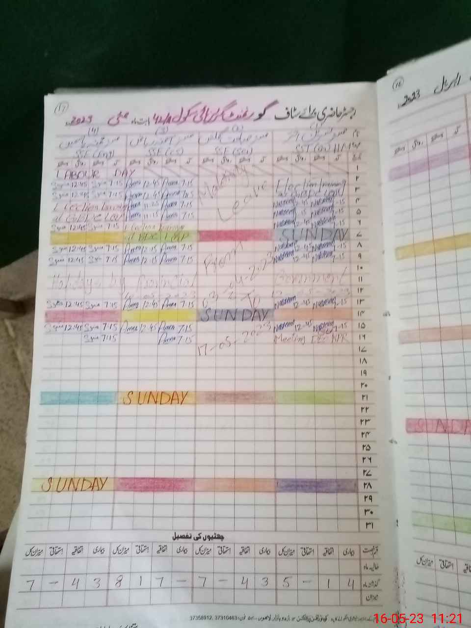 | CNIC | Full Name | Designation | R/C | Absence During Last Calender Month |