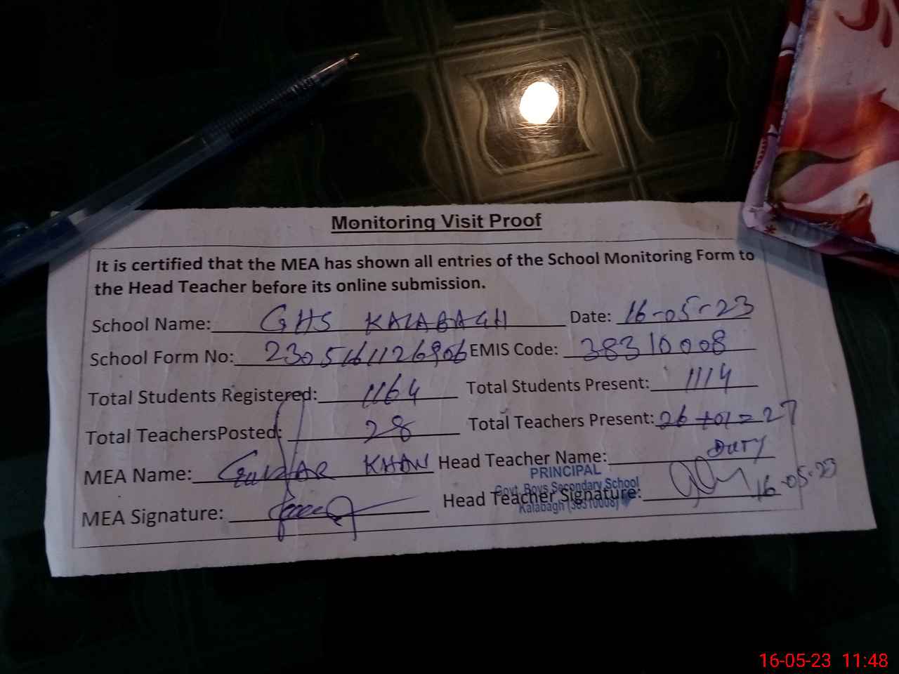| EMIS Code: 38310008 | Name of School: GHS KALA BAGH | |||