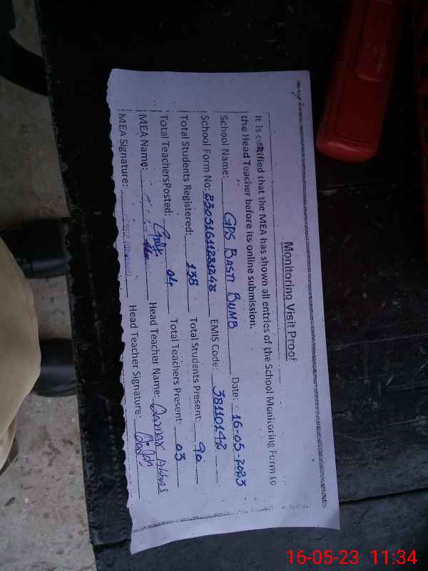 | EMIS Code: 38110142 | Name of School: GPS BASTI BUMB | |||