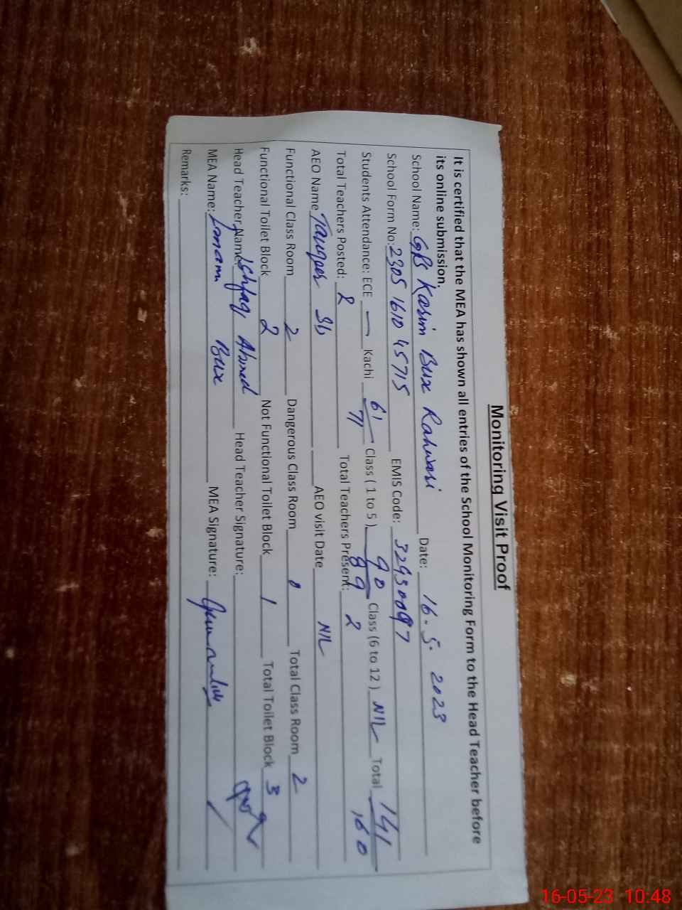 | EMIS Code: 32430097 | Name of School: GPS KARIM BUX RAHWARI | |||