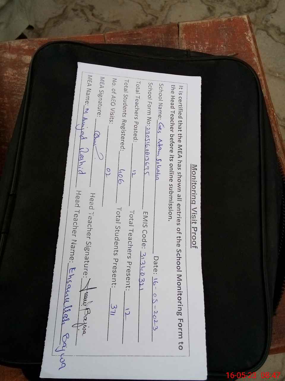 | EMIS Code: 31340321 | Name of School: GES BASTI ADAM SOHABA | |||