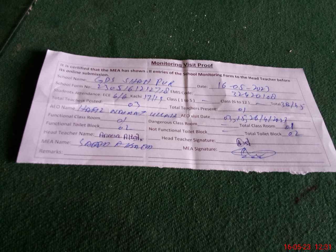 | EMIS Code: 32420108 | Name of School: GPS SHAH PUR | |||