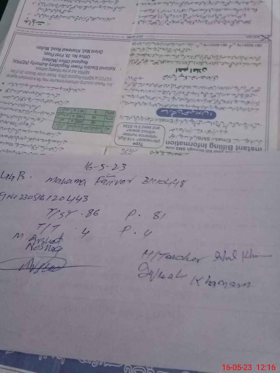 | Name: Ra**** Na**** Designation: (School Headmaster's/Headmistress's) PST Phone/Cell Number: 03**** |