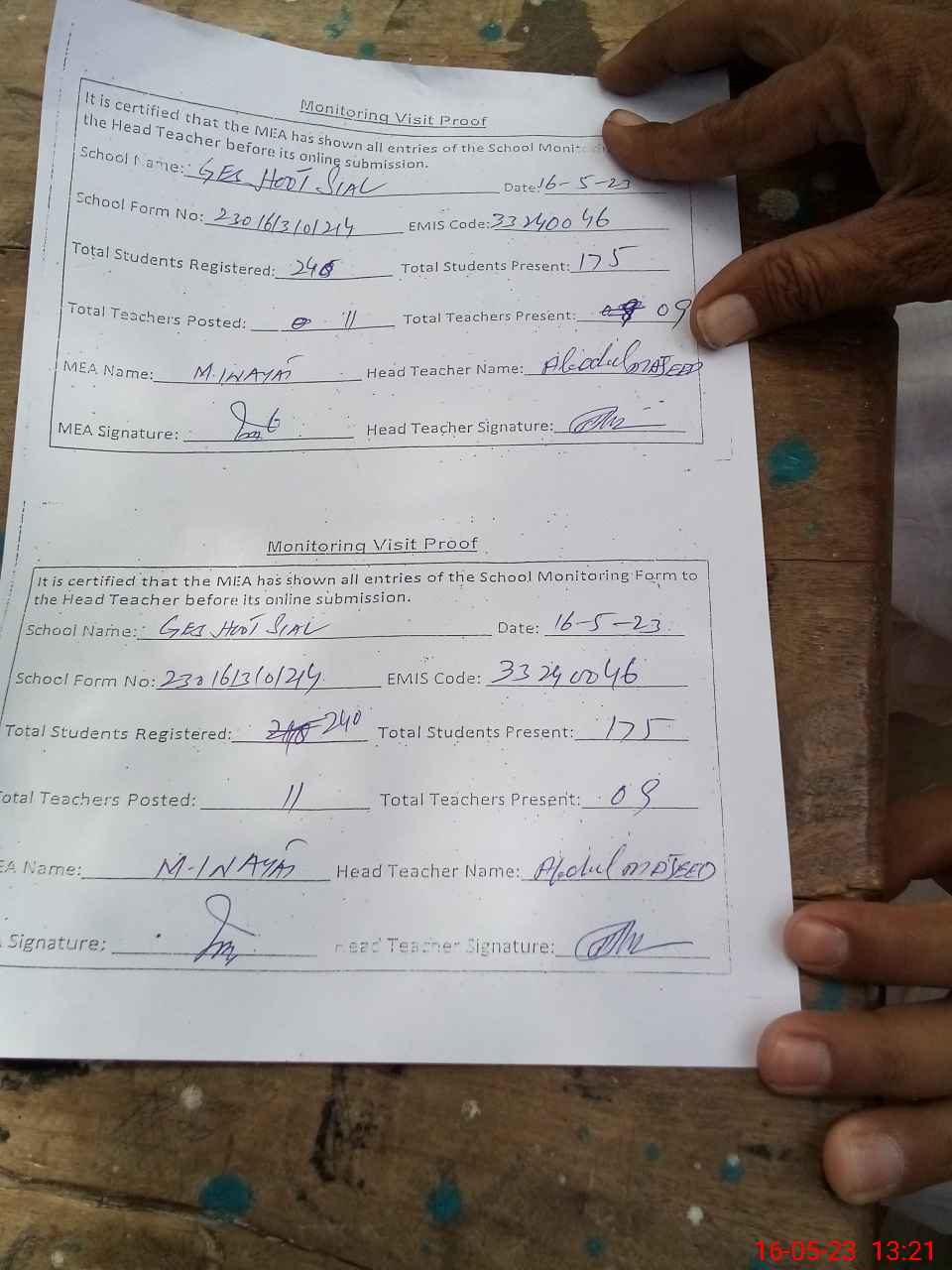 | Name: AB**** MA**** Designation: (School Headmaster's/Headmistress's) SST HM Phone/Cell Number: 03**** |