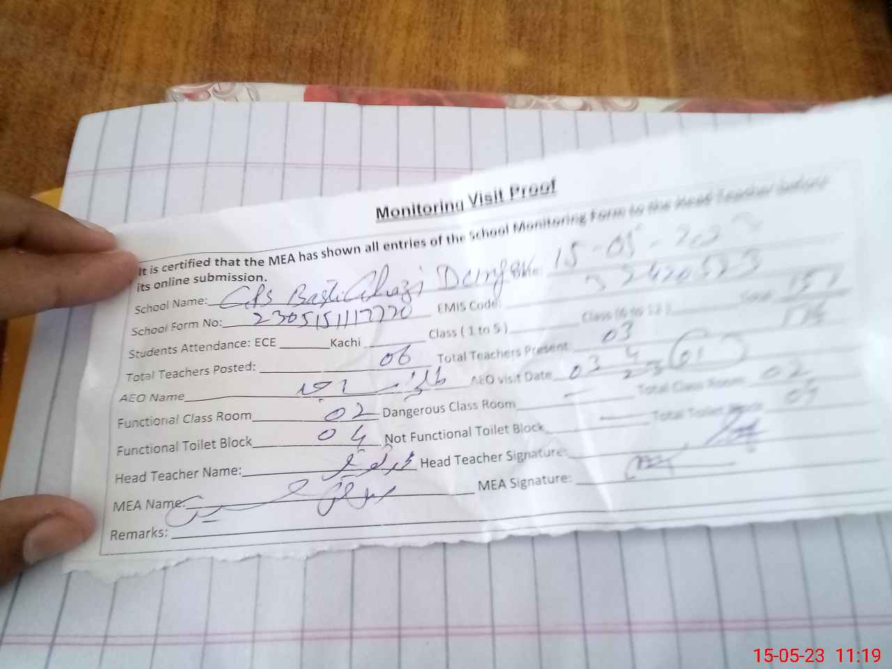 | EMIS Code: 32420523 | Name of School: GPS BASTI GHAZI DANGER | |||