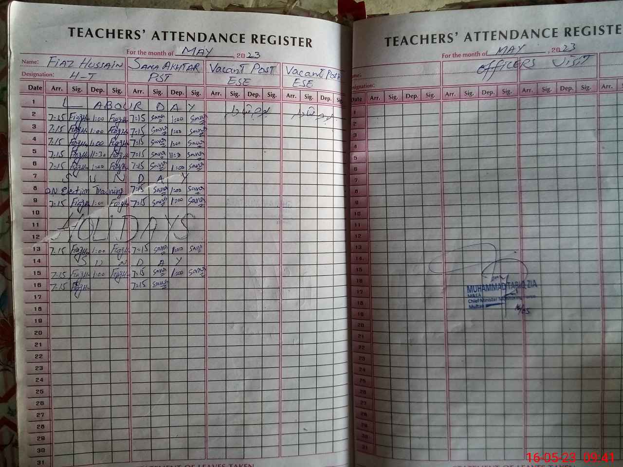 | Name: FI**** HU**** Designation: (School Headmaster's/Headmistress's) PST Phone/Cell Number: 03**** |