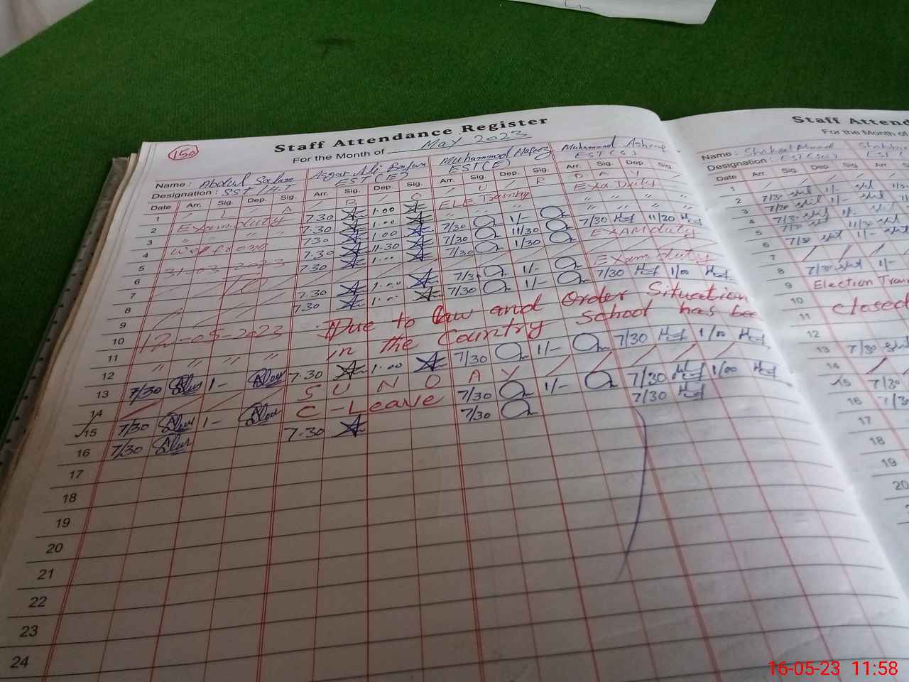 | CNIC | Full Name | Designation | R/C | Absence During Last Calender Month |