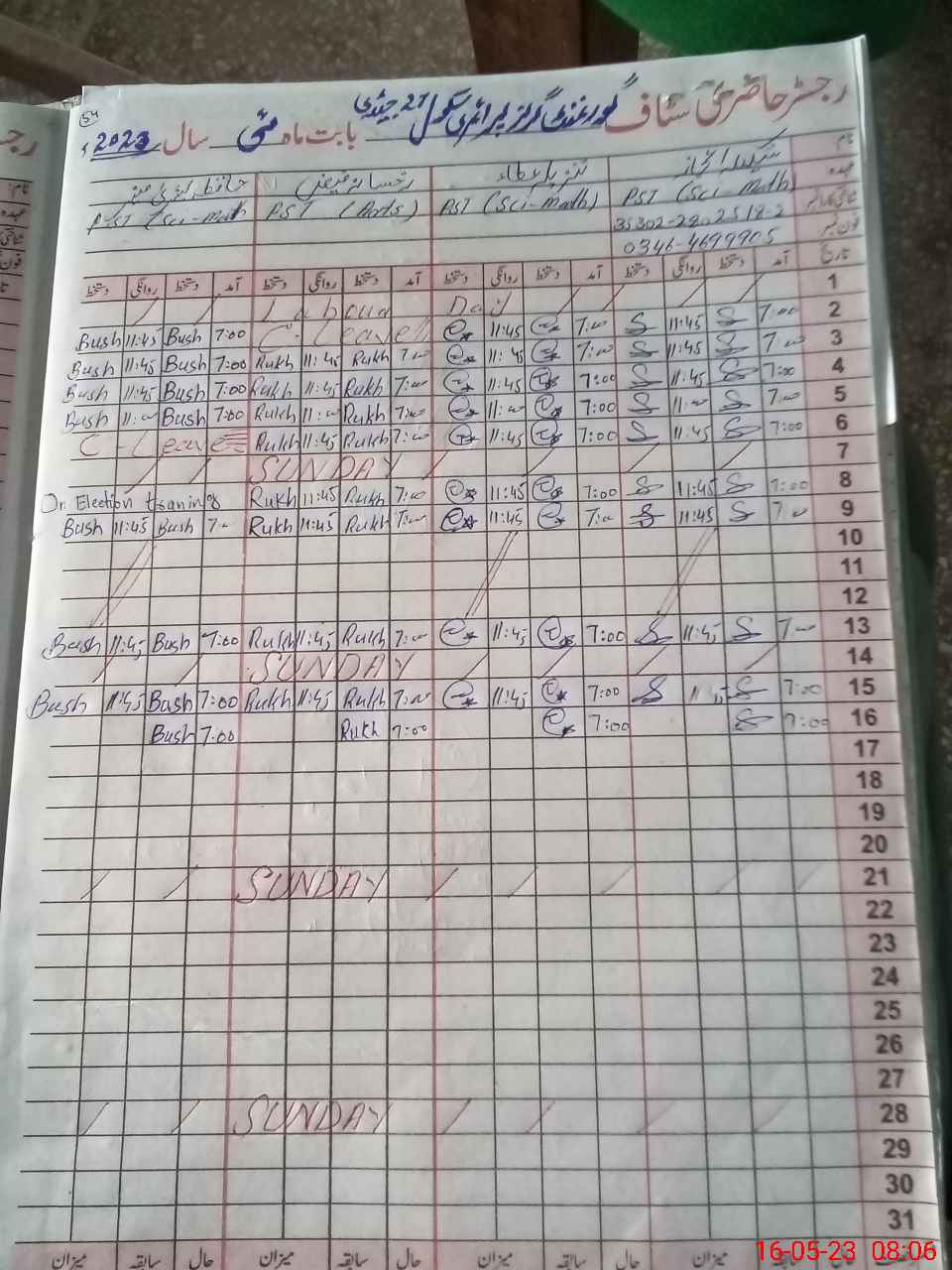 | Name: Sh**** Ej**** Designation: (School Headmaster's/Headmistress's) PST Phone/Cell Number: 03**** |