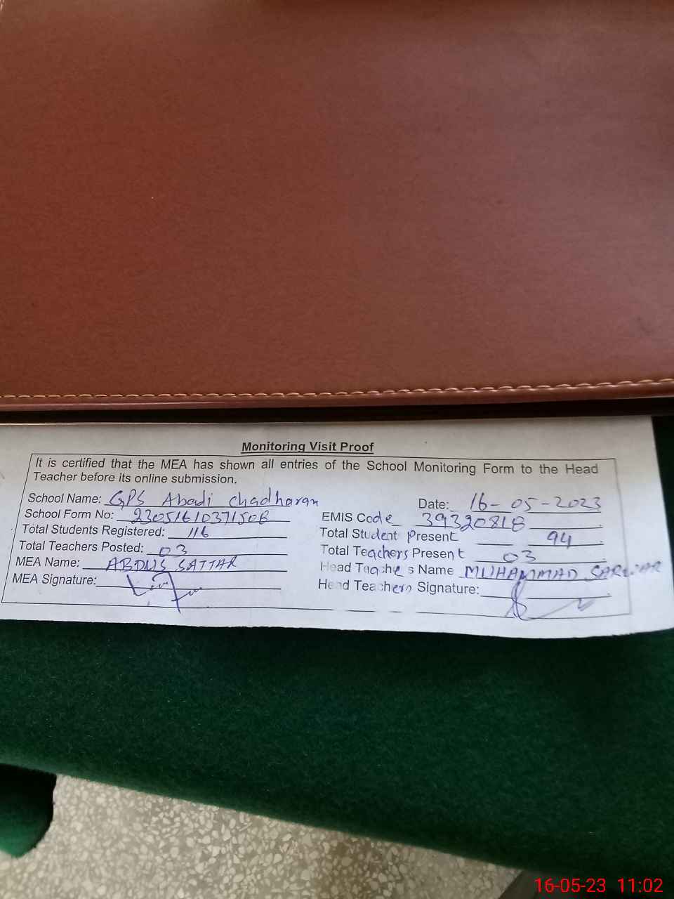 | EMIS Code: 39320818 | Name of School: GPS ABADI CHADHRAN | |||