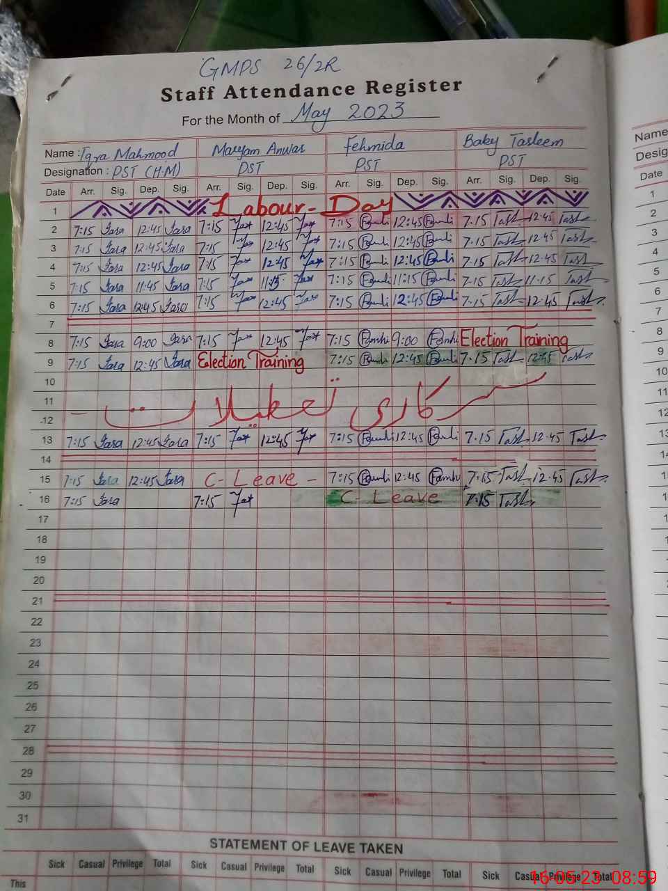 | Leave | Duty | Absent | Maternity | Medical | Ex- Pak |