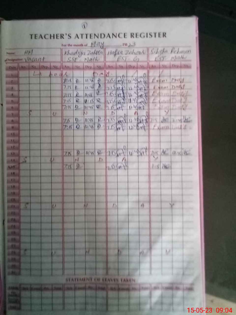 | Leave | Duty | Absent | Maternity | Medical | Ex- Pak |