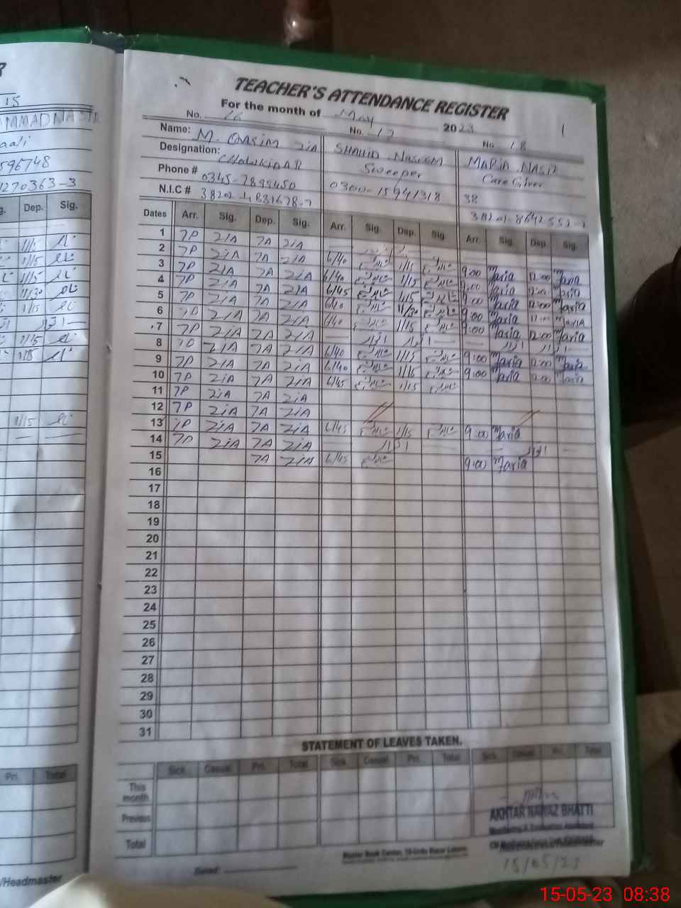 | Name: Na**** Designation: (School Headmaster's/Headmistress's) SST Phone/Cell Number: 03**** |