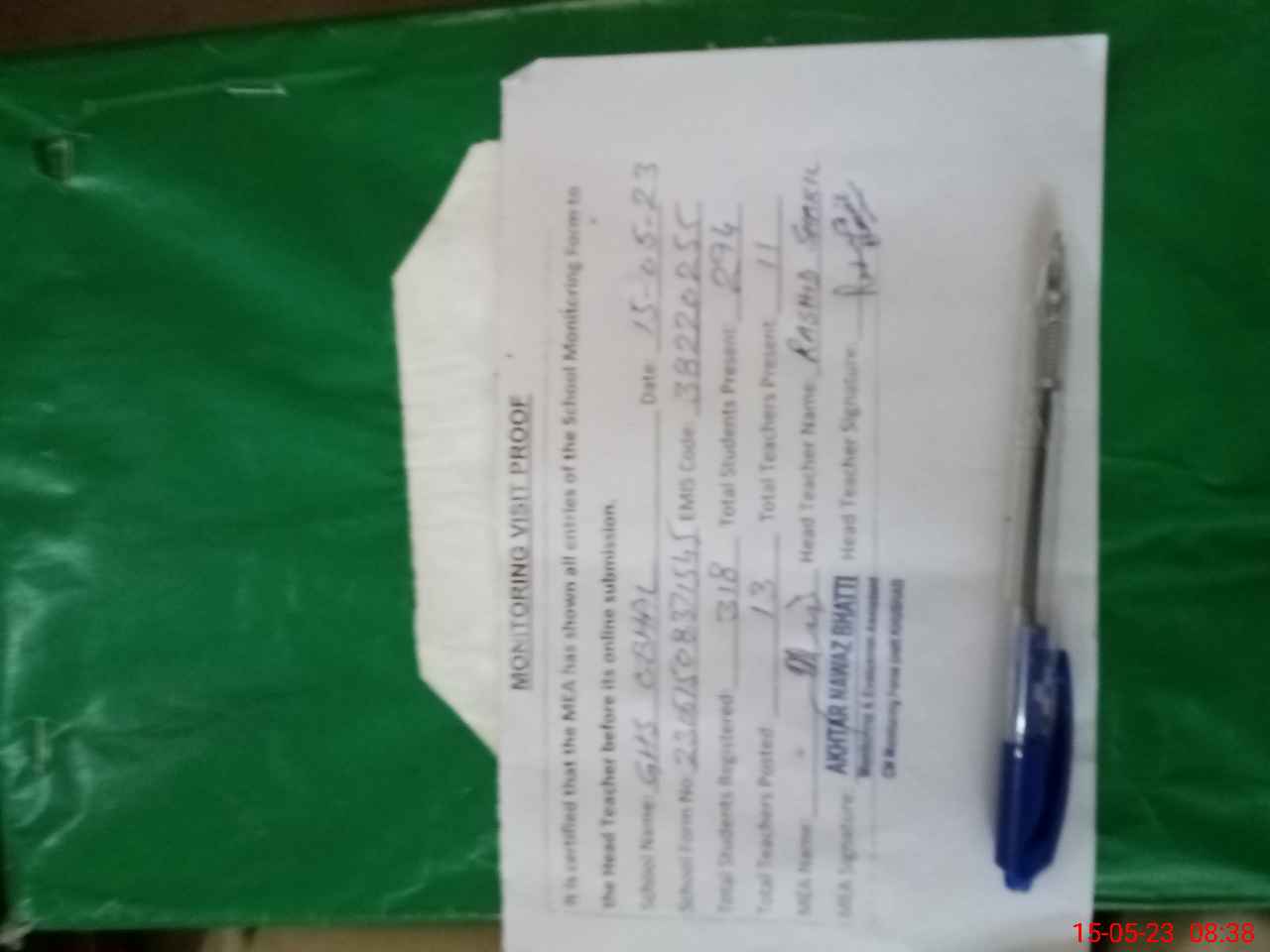 | Attendance Register | Head Teacher | MEA with School | Visit Proof |