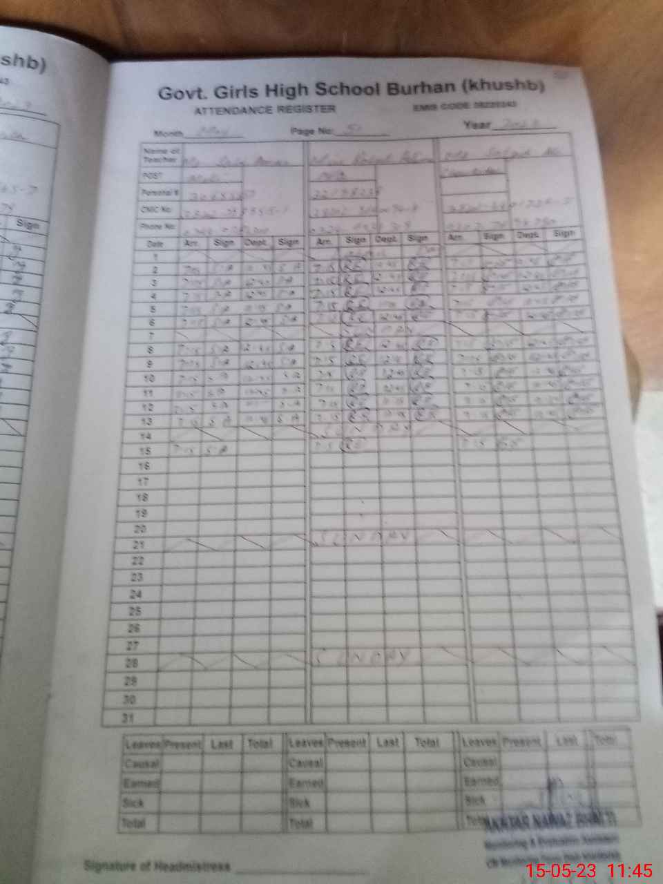 | Name: As**** Ba**** Designation: (School Headmaster's/Headmistress's) S.S.T.(Sci ) Phone/Cell Number: 03**** |