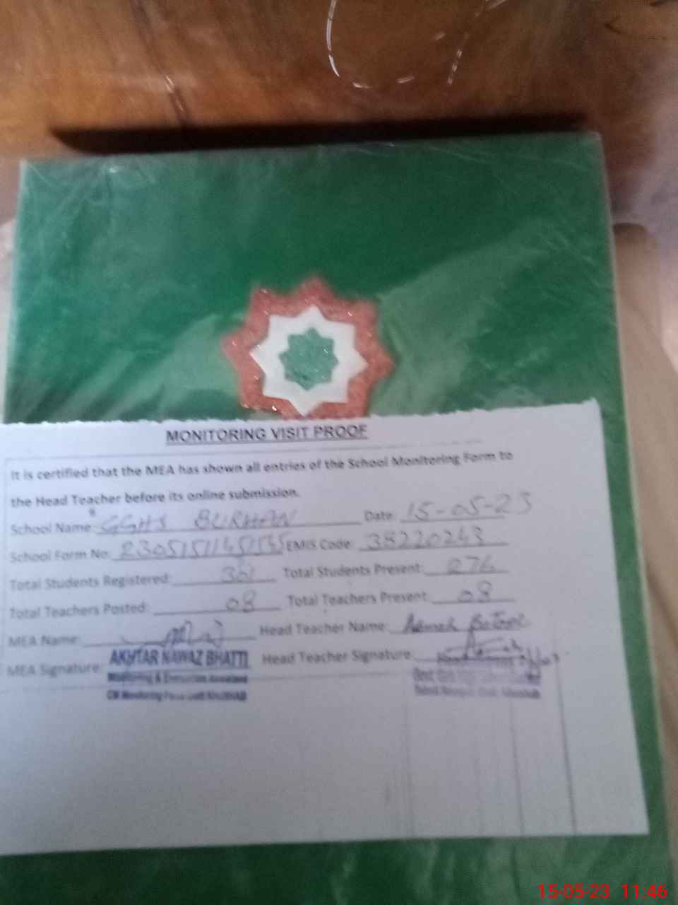 | Attendance Register | Head Teacher | MEA with School | Visit Proof |
