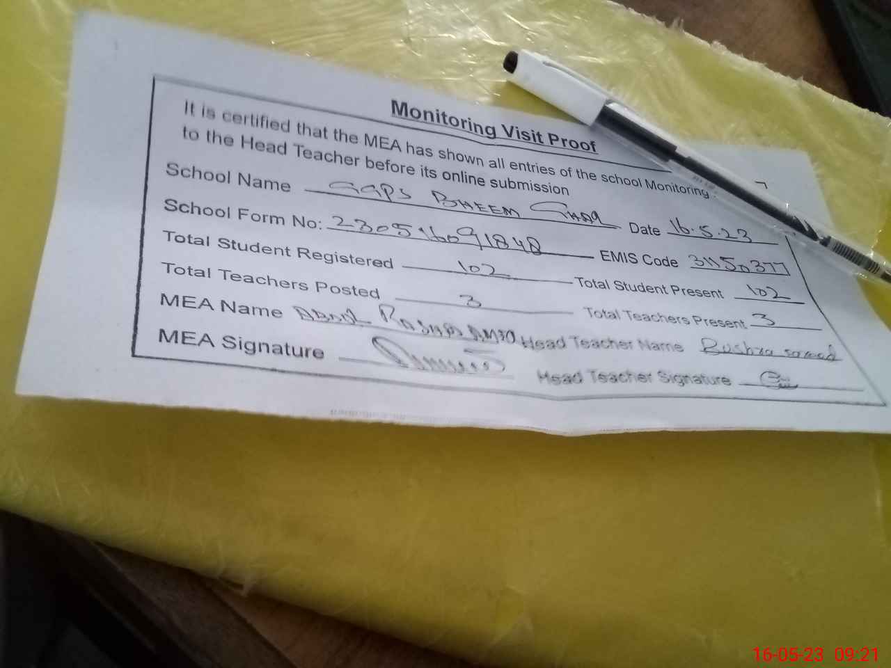 | EMIS Code: 31150377 | Name of School: GGPS BHEEM GARH | |||