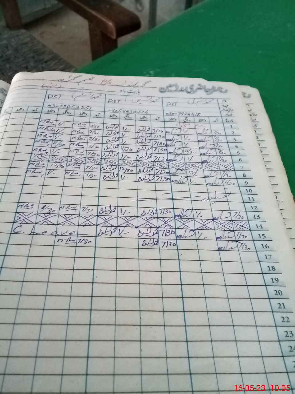 | CNIC | Full Name | Designation | R/C | Absence during last cal. month |