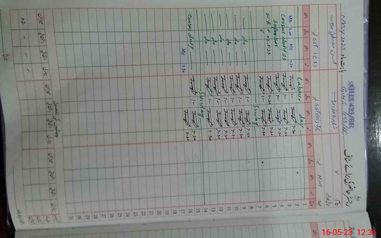 | CNIC | Full Name | Designation | R/C | Absence During Last Calender Month |