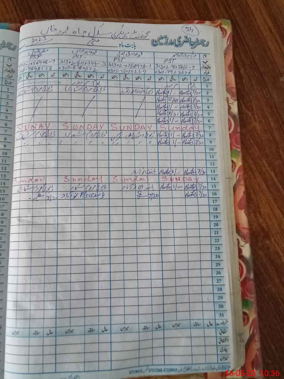 | CNIC | Full Name | Designation | R/C | Absence During Last Calender Month |