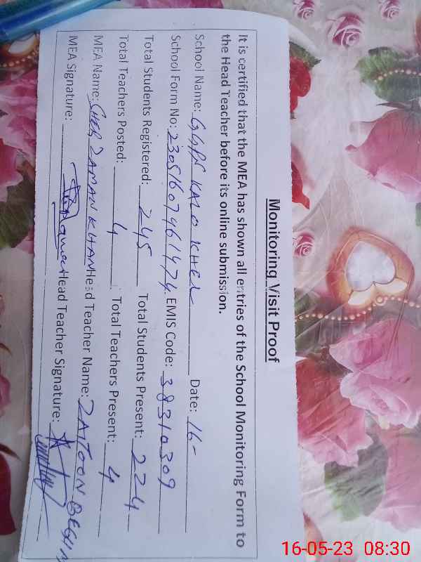 | Certified that this School was Inspected by the Undersigned MEA/DMO Today and the Information Stated Above is as Per Record. | |||||