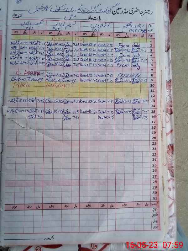 | CNIC | Full Name | Designation | R/C | Absence During Last Calender Month |