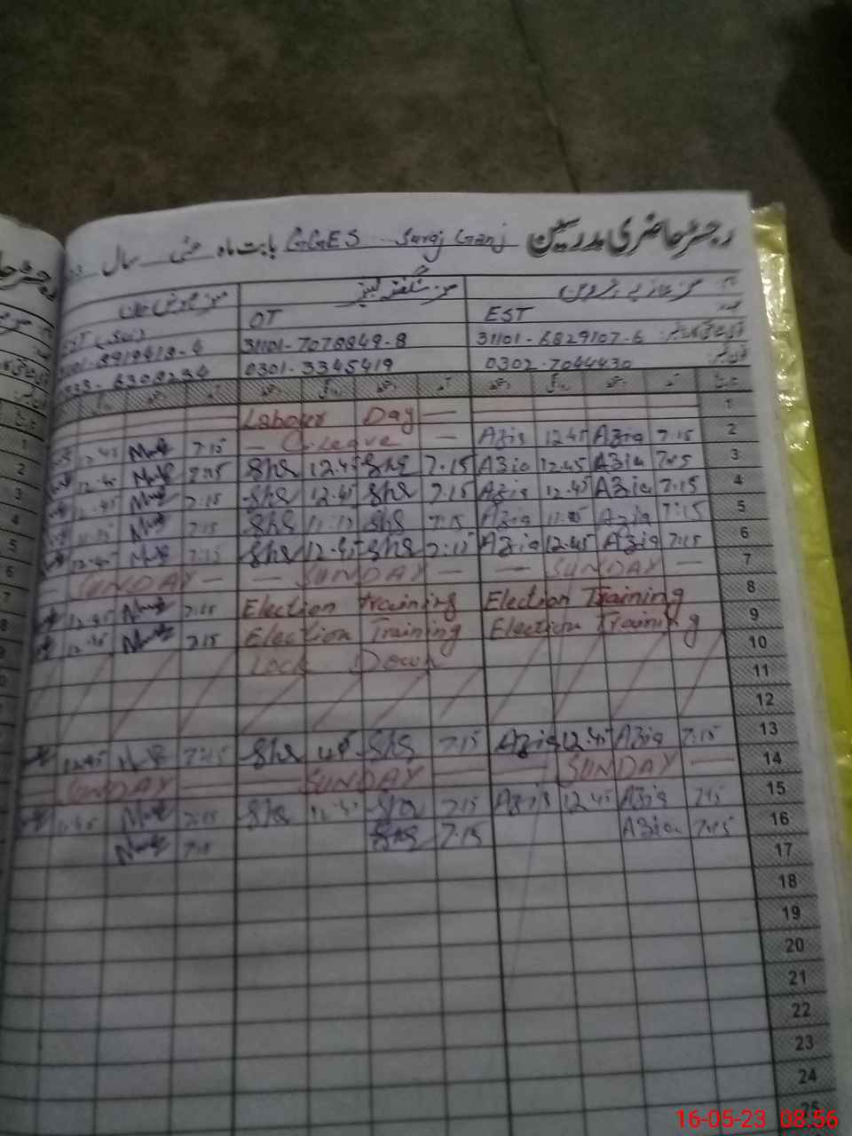 | 31**** | Mu**** Na**** | PST | Regular | 2 | 0 | 0 | 0 | 0 | 0 | 0 | 0 | 2 | Maternity |