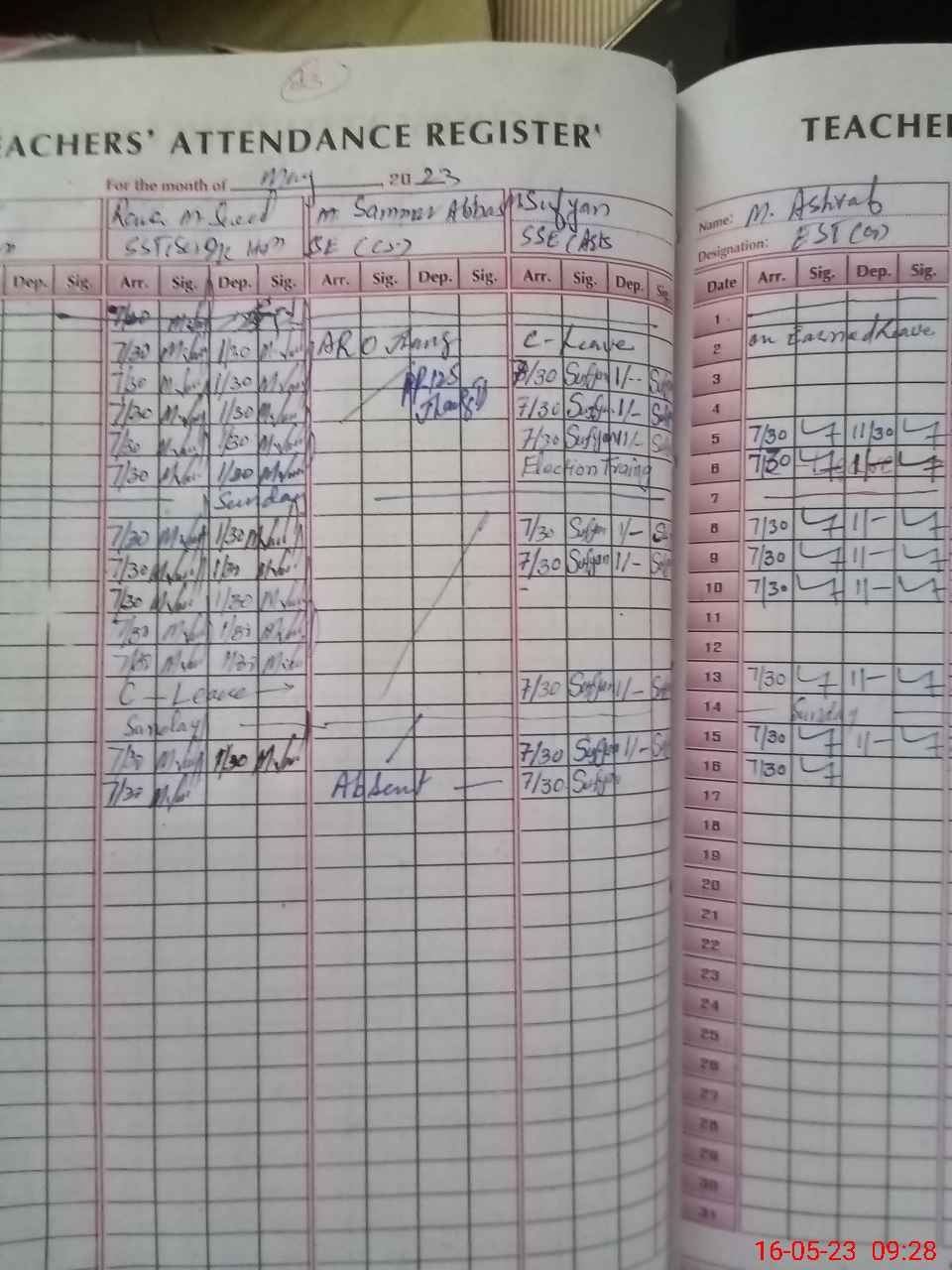 | 33**** | Sa**** Ab**** | Contract | 0 | 30 | 0 | 0 | 0 | 0 | 0 | 0 | 0 | Absent (Un-Authorized) | |