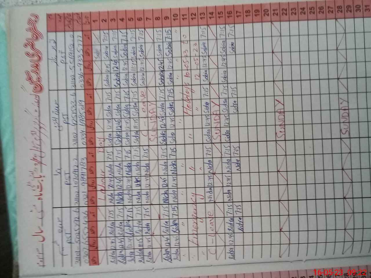 | CNIC | Full Name | Designation | R/C | Absence During Last Calender Month |