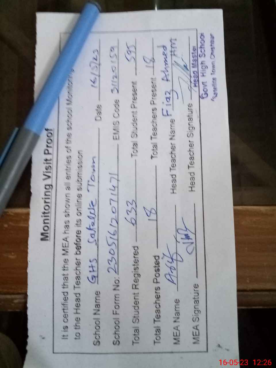 | EMIS Code: 31120159 | Name of School: GHS SATLITE TOWN CHISHTIAN | |||