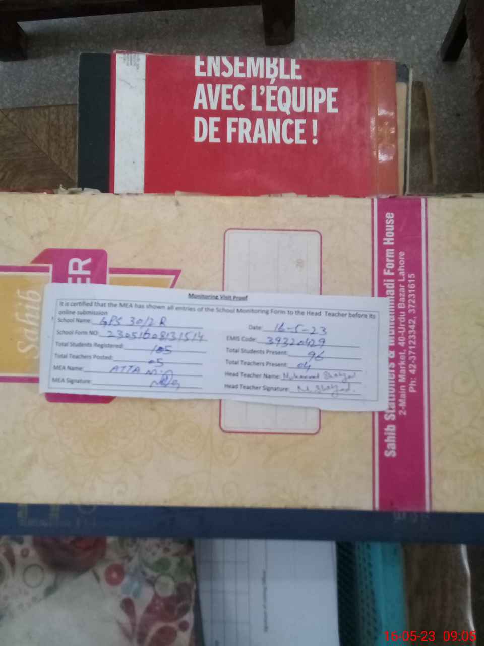 | Attendance Register | Head Teacher | MEA with School | Visit Proof |