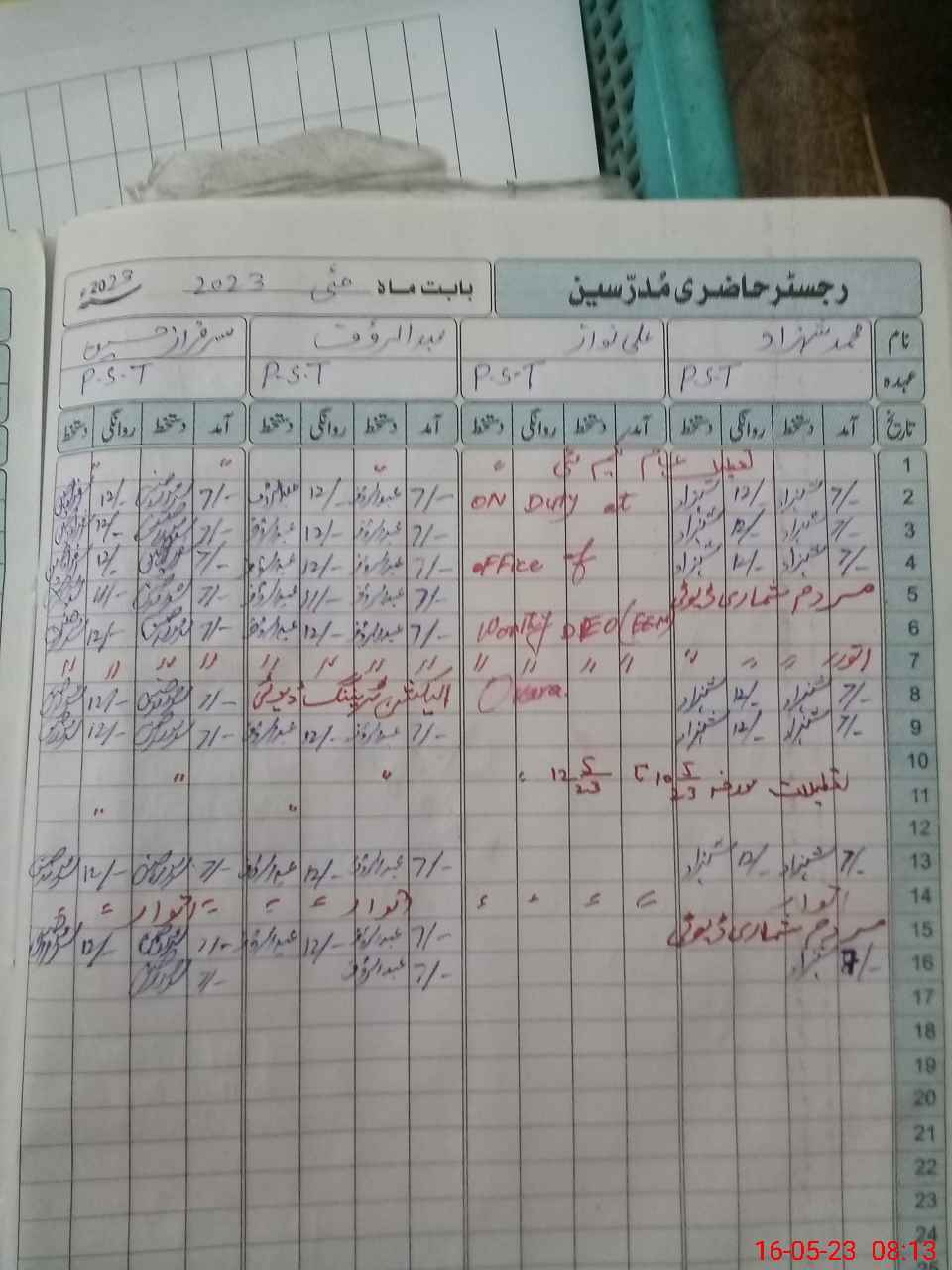 | CNIC | Full Name | Designation | R/C | Absence During Last Calender Month |
