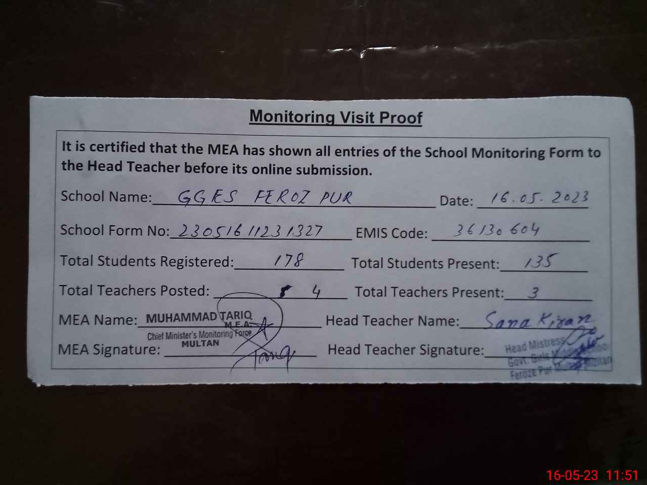 | EMIS Code: 36130604 | Name of School: GGES FEROZ PUR MULTAN | |||