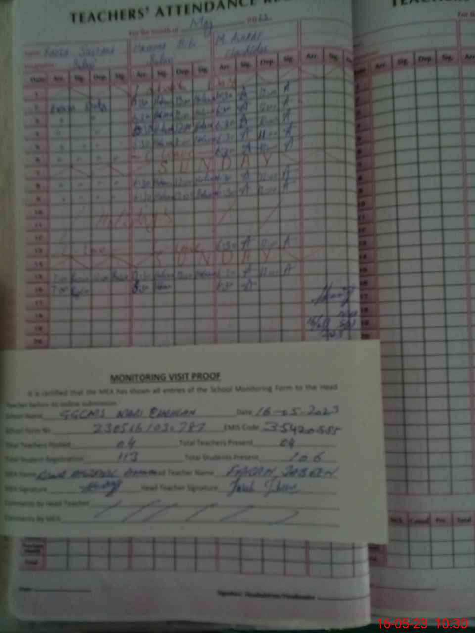 | Attendance Register | Head Teacher | MEA with School | Visit Proof |