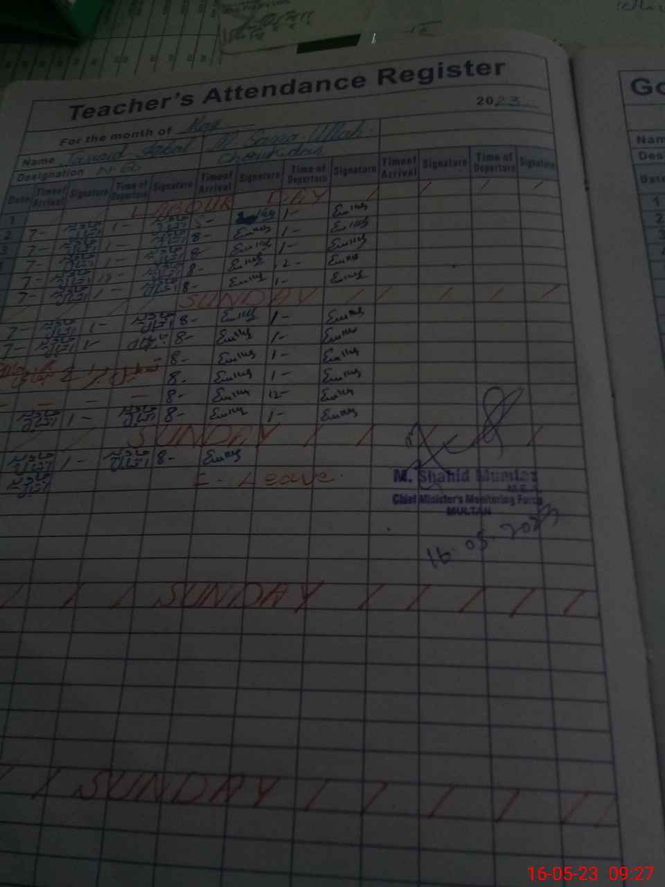 | Name: AB**** SH**** Designation: (School Headmaster's/Headmistress's) S.S.T.(Arts) Phone/Cell Number: 03**** |