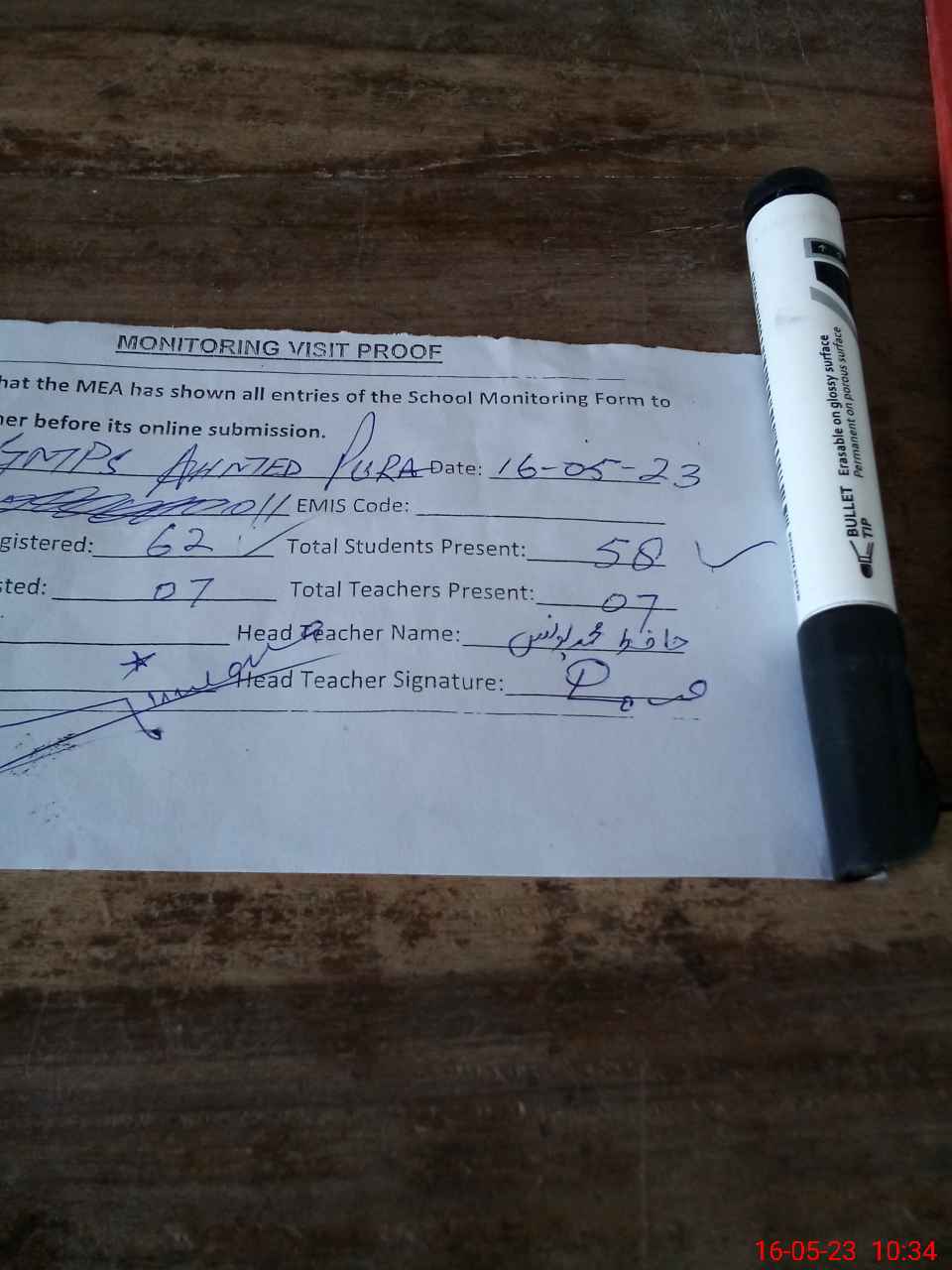 | EMIS Code: 38210516 | Name of School: GMPS AHMAD PURA | |||