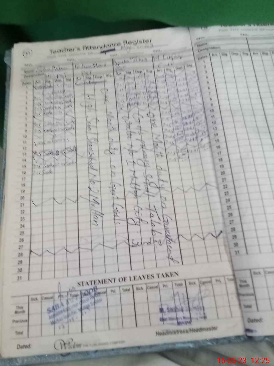 | Leave | Duty | Absent | Maternity | Medical | Ex- Pak |