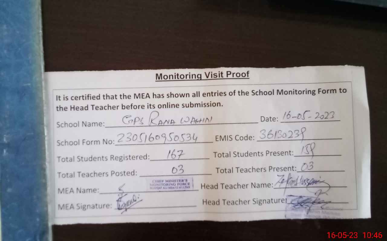 | EMIS Code: 36130239 | Name of School: GPS RANA WAHIN | |||