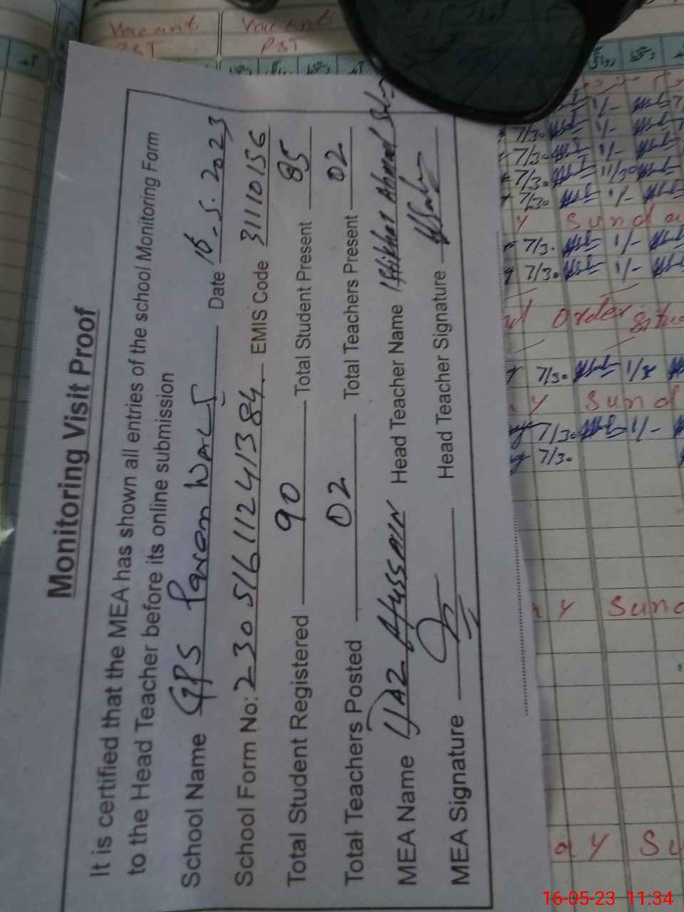 | EMIS Code: 31110156 | Name of School: GPS PARAN WALA | |||
