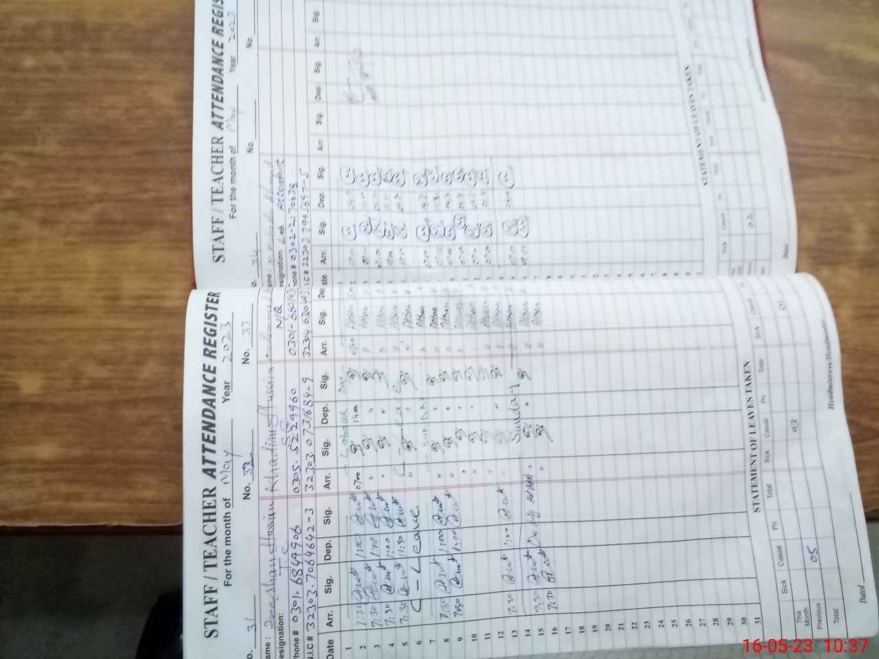| Name: Ta**** Az**** Designation: (School Headmaster's/Headmistress's) PRINCIPAL Phone/Cell Number: 03**** |