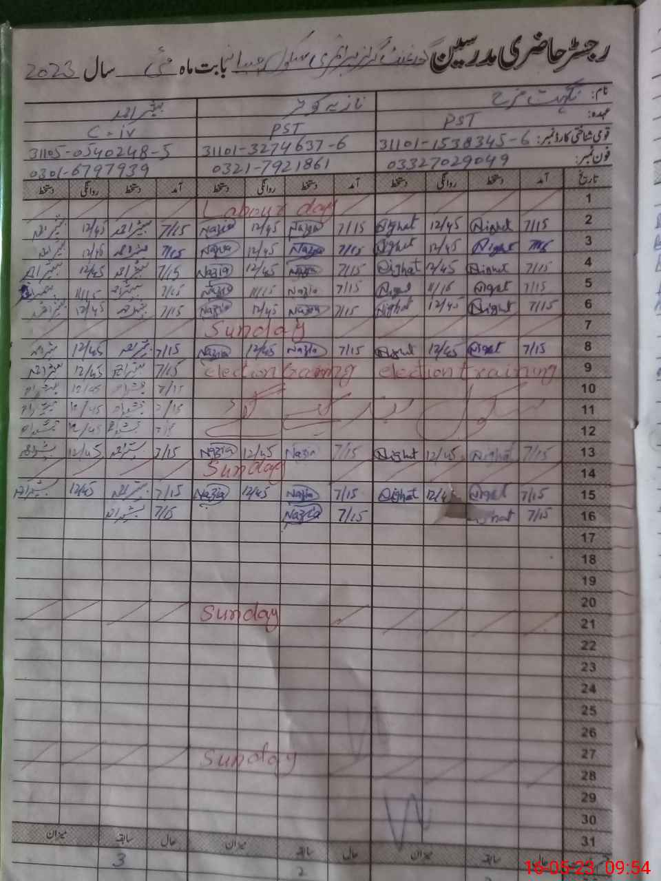 | CNIC | Full Name | Designation | R/C | Absence During Last Calender Month |