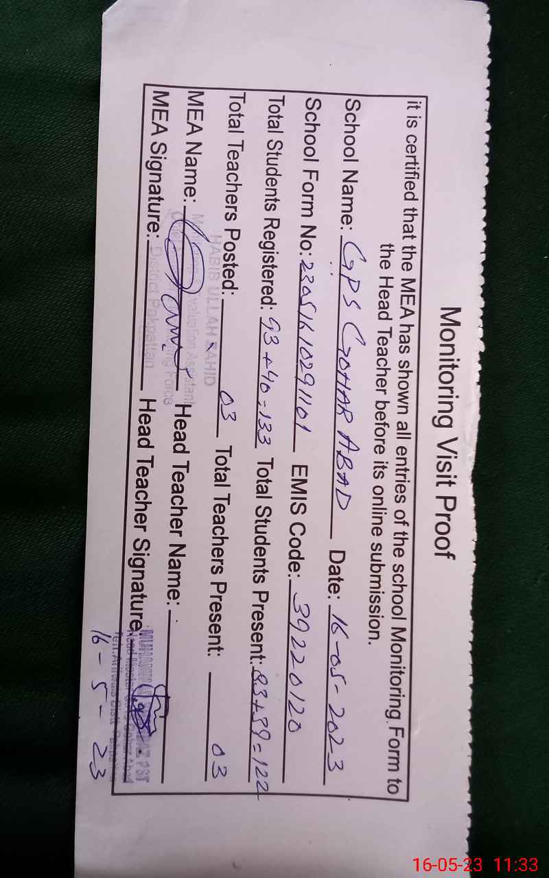 | EMIS Code: 39220120 | Name of School: GPS GOHAR ABAD | |||