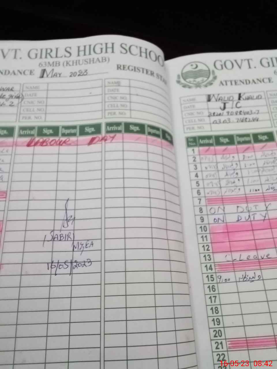 | CNIC | Full Name | Designation | R/C | Absence During Last Calender Month |