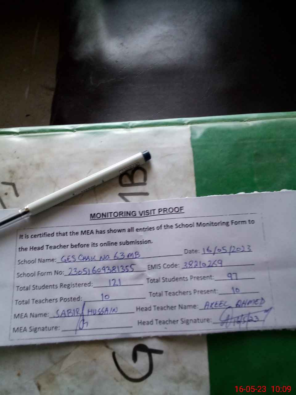 | Attendance Register | Head Teacher | MEA with School | Visit Proof |