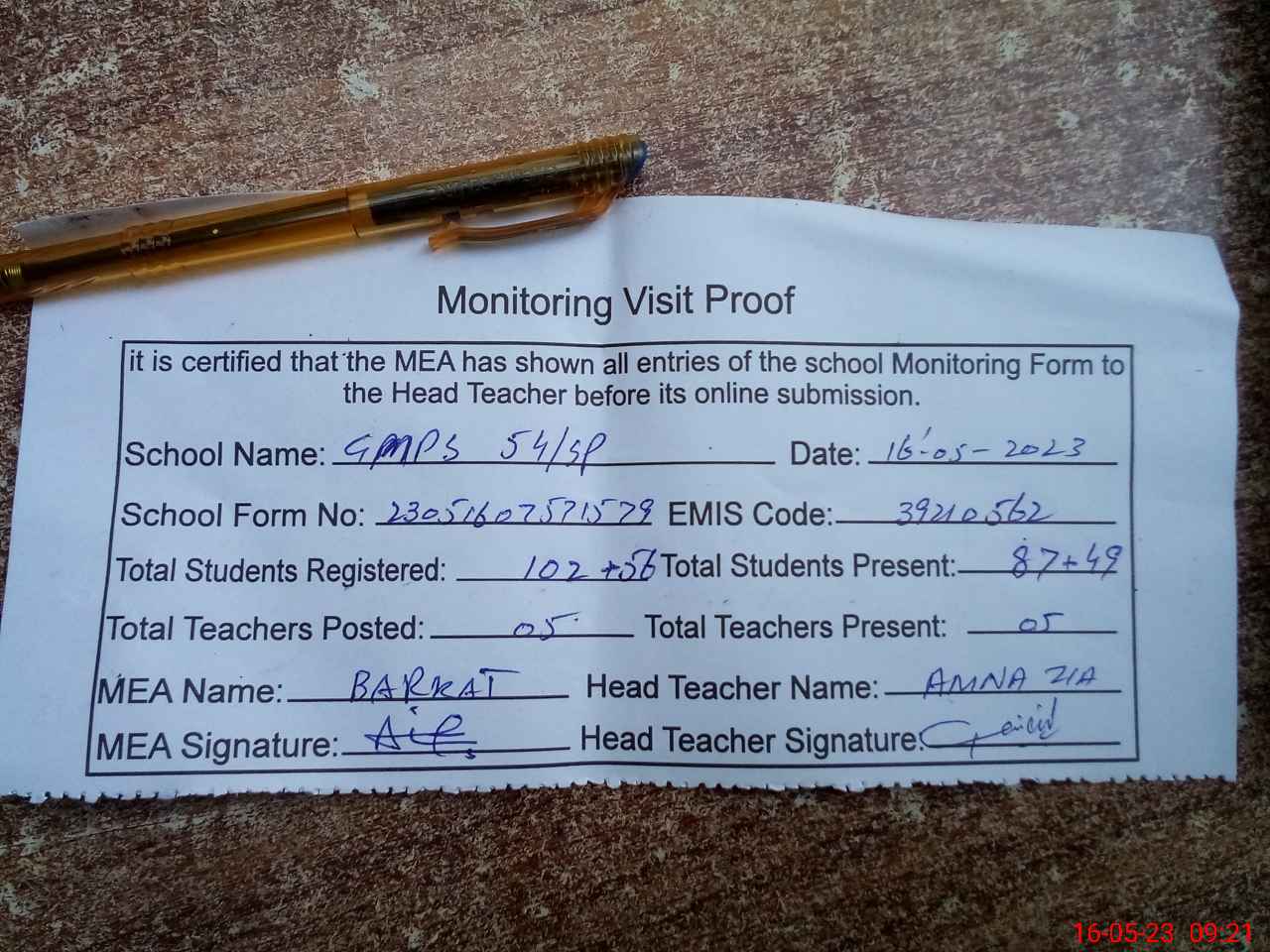 | EMIS Code: 39210562 | Name of School: GMPS 54/SP | |||