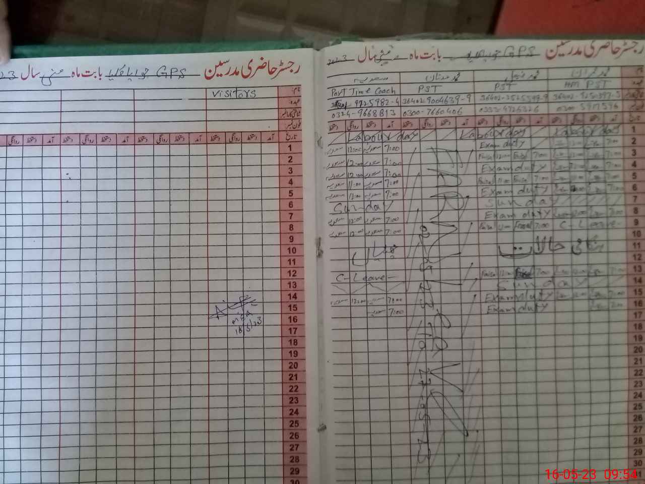 | 36**** | Mu**** Fa**** | Contract | 0 | 10 | 0 | 0 | 0 | 0 | 0 | 0 | 0 | Exam Duty | |