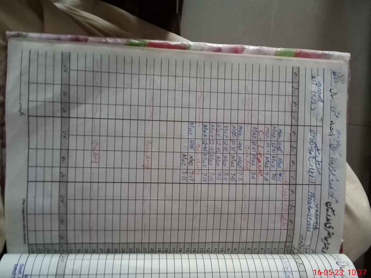 | Leave | Duty | Absent | Maternity | Medical | Ex- Pak |