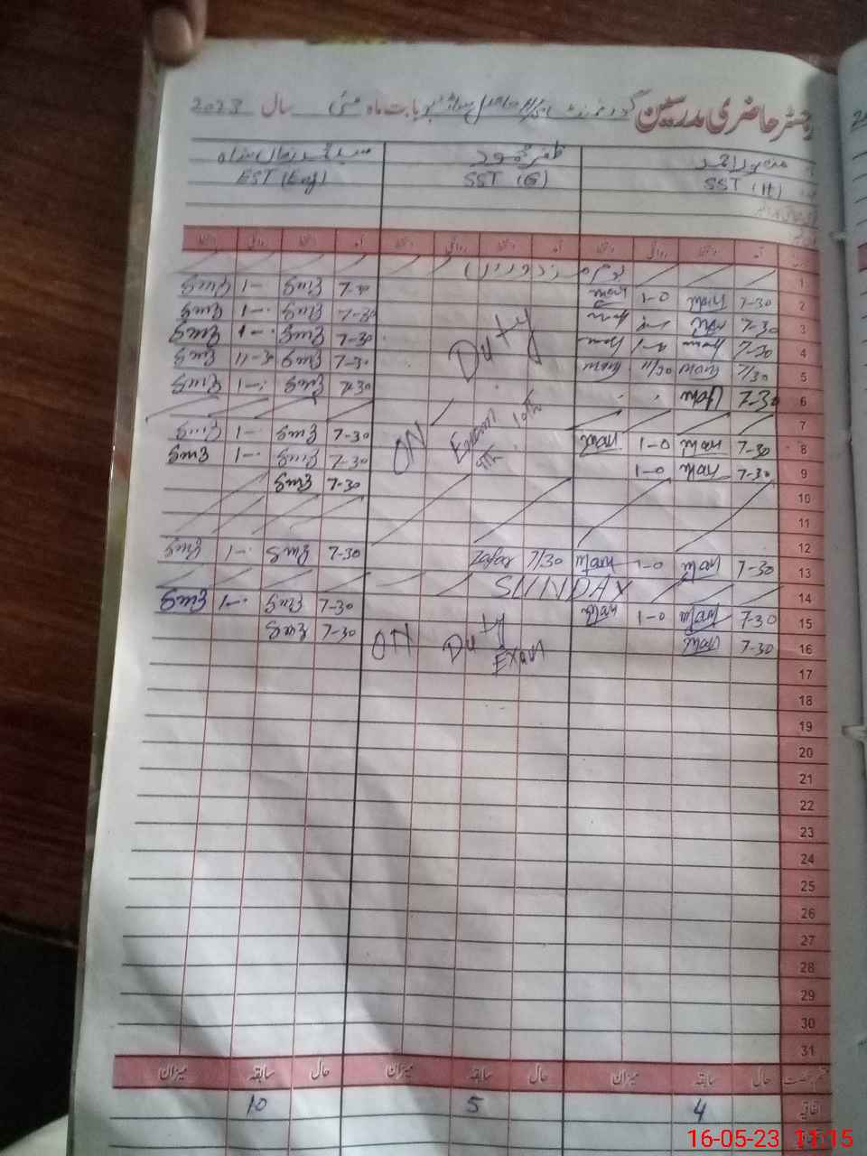 | 31**** | Za**** Ma**** | Regular | 0 | 30 | 0 | 0 | 0 | 0 | 0 | 0 | 0 | Exam Duty | |